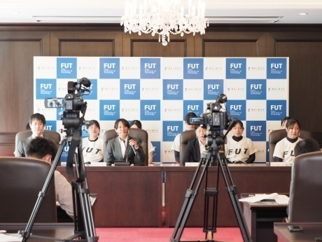 4月28日(木)の午後3時より、福井工業大学FUTタワー3Fの会議室において、創部にあたっての趣旨説明会を開催し、県内6つのメディアからの取材に応じました。女子硬式野球部への関心の高さは会見後に途切れずに続いたメディアの皆さんからの質問にも表れていました。