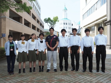 講演の前は緊張した様子だった中学生たちも、記念写真撮影に気さくに応じていただいているうちに緊張が解けたのか退場の際にはアーチを作って高原選手をお送りしていました。