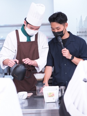 世界のトップバリスタ 深山晋作氏を福井製菓専門学校にお迎えして、コーヒー実習会が開催されました。