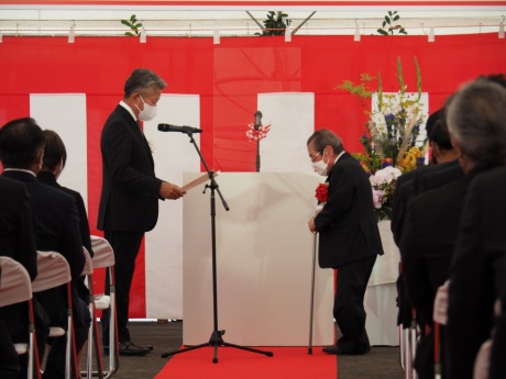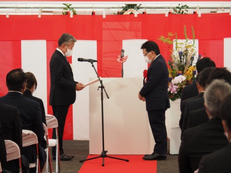 引き続き金井理事長から、施工を担当された株式会社三木組(代表取締役社長 三木康郎)様 と設計を担当された株式会社木下設計(代表取締役会長 木下賀之)様に感謝状が贈呈されました。