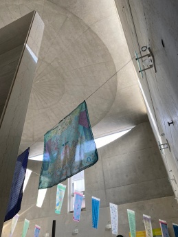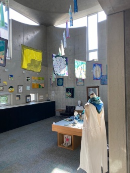 「建築のポテンシャルを生かしつつ、店舗へとチューニングしていく」という方針の下にオーナー様とディスカッションを重ね、店舗として必要なディスプレイの考え方、仕上げの提案や什器のデザインを行いました。2022年8月末オープン記念の工事記録写真展を行った後、店舗として開店しました。オーナーが名付けた新しい館名Nimbus(ニンバス)とはラテン語に起源を持つ雨雲、雪雲を指す言葉です。勝山の空の下、打放しコンクリートのグレーッシュな空間に色とりどりのスカーフが舞う様なディスプレイを意図しています。
