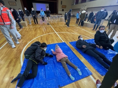 2月12日(日)三国北小学校にて、避難所開設訓練(みくに地区まちづくり協議会主催)が行われました。今回の避難所開設訓練の狙いの一つは冬期の寒さを体験すること。避難訓練は通常、天候の穏やかな春や秋に行われることが多いですが、真冬に行うことで『寒さ対策に何が必要か』を実感してもらうため、この時期の開催となりました。