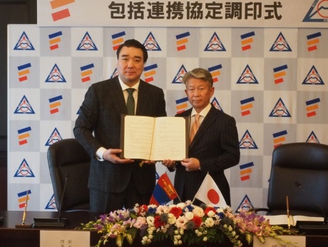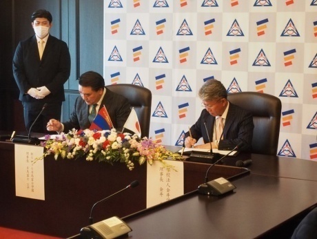 令和5年3月22日(水)学校法人金井学園と新モンゴル日馬富士学園は包括連携協定の協定書の調印式をおこないました。式典には日馬富士 公平 理事長(本名 ダワーニャム・ビャンバドルジ氏)と金井理事長が出席し、調印しました。金井理事長から日馬富士理事長に記念の盾が贈呈されました。 今回の包括連携協定の締結により、新モンゴル日馬富士学園から福井工業大学をはじめとする本学園の各学校への留学生受け入れの推進、学生・生徒の交流、教職員派遣や相互訪問による交流など、幅広い連携活動を進めてまいります。