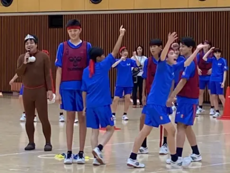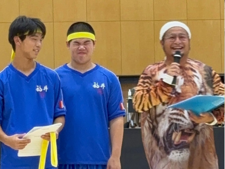 当日は、バンビーノのお二人と飯めしあがれこにおさんが登場して、生徒たちと一緒に新競技を盛り上げてくださり、楽しい体育祭となりました。プロジェクトメンバーは「複雑な内容のゲームなので、ルールをどうやってみんなに伝えるかが一番難しかったが、実際にやってみて、競技する生徒も応援する生徒も盛り上がることができて良かった」と、満足げに振り返っていました。
