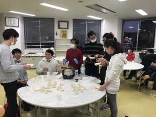 中国では春節に水餃子を食べる風習があるということで、留学生や日本人の学生たちが水餃子を作っていました。