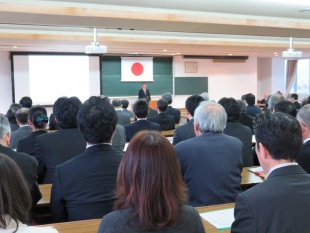 また、学校の重大イベントである大学入試の前半戦がほぼ終了し、新年からは後半戦が始まること、高校・中学校においても入試本番を迎えることについて触れました。教職員には健康に留意し、各学校とも定員を充足して新年度を迎えられるよう、より一層業務に励んでもらいたいと述べ、最後に今年一年間の感謝の言葉で年末の挨拶を締めくくりました。