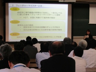 中高事務課からは、県の補助金事業に係る業務について説明がありました。業務を行っている補助金事業について紹介があり、資格取得推進や授業料減免補助など、生徒への支援を重視した取組について情報提供がありました。生徒や保護者への丁寧で分かりやすい説明が安心を生むというメッセージで発表を締めくくりました。