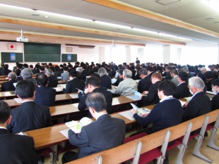 そのあと、大学、高校・中学校、法人本部の各部門で中期ビジョンおよび戦略分野の説明を行い、教職員一人ひとりが真剣なまなざしで耳を傾けていました。