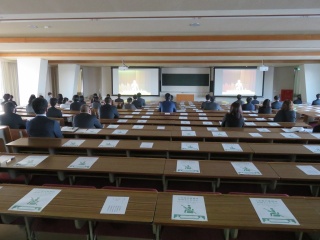 新型コロナウイルス感染防止に万全を期すため、会場を3ヶ所に分け、メイン会場となる金井講堂での様子を大講義室2会場にてライブ上映するというハイブリット形式での実施となりました。