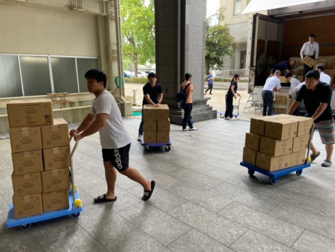 令和6年6月6日、本学園のオリジナルウォーターである「FUT WATER」が約15,000本納品されました。