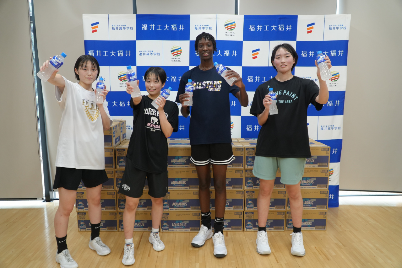 株式会社C&B様と日本コカ・コーラ株式会社様より、福井高等学校スポーツクラブ生に対して、熱中症対策としてアクエリアス1,200本を寄贈いただきました。