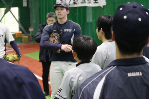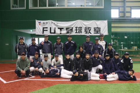 大野市との相互連携協定の一環として、カールマイヤーグラウンド室内練習場にて、大野市の中学校軟式野球チームメンバーや小学校6年生を対象に野球教室を開催しました。