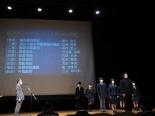 2月13日に福井県生活学習館(ユー・アイふくい)で開かれた「ふくい産業教育フェア」に先立ち、「福井フューチャーマイスター制度」の表彰式が行われ、進学科創造科学コース3年 三田玲華さんが、県内高校生の中でもトップとなる「令和2年度福井マイスター トップ賞」を獲得しました。