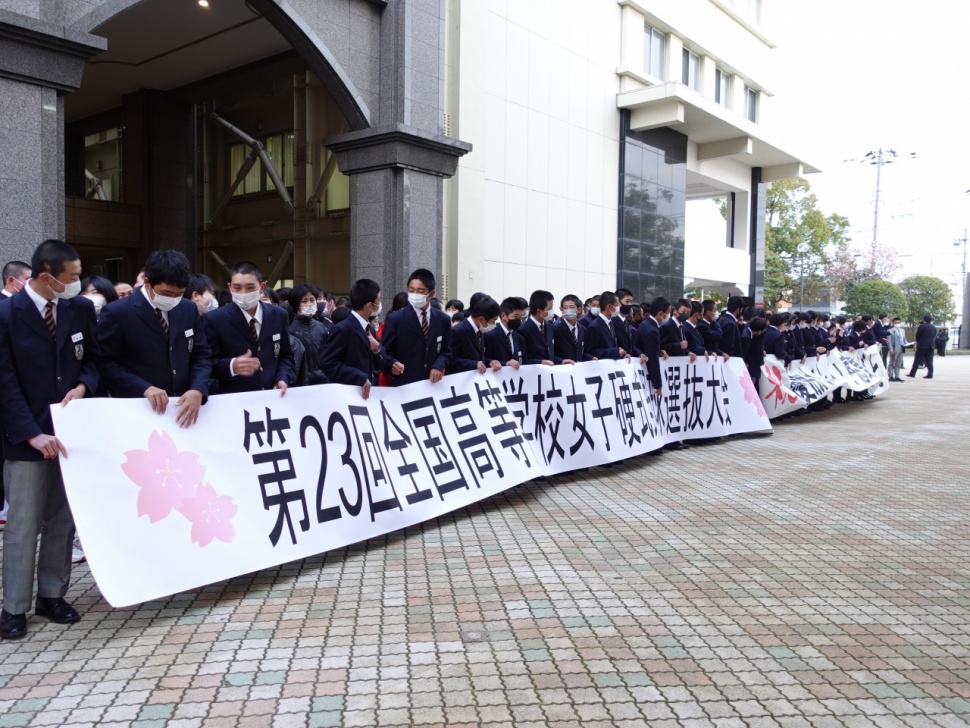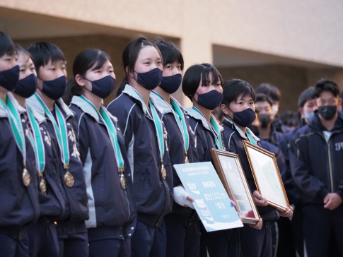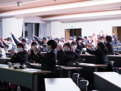 その報告会の中で中村監督で、お集り頂いた皆さんをはじめ、多く方々の応援のおかげですと、心からの感謝の意を表しました。選手を代表して挨拶したキャプテンの東さんは、今回の大会の喜びを話すとともに夏に向けての決意を笑顔で語っていました。