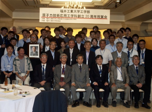 9月16日 日刊県民福井 9月17日 福井新聞 9/15(日)に本学にて原子力技術応用工学科創立20周年記念式典を開催し、 歴代教員や卒業生ら約60名が参加しました。 特別講演として、福井大学附属国際原子力工学研究所の宇埜正美所長・ 福井県原子力安全対策課の山本晃弘参事にご登壇いただきました。 また同日、学科同窓生らによる学科同学会を設立し、その初代会長として 学科4代目主任教授で大阪大学の堀池寛名誉教授が就任しました。 記念式典後には祝賀会を開催し、恩師や卒業生たちが交流を深めました。