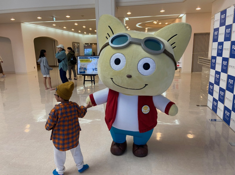 引き続き実施されたイベント「宇宙おねえさんとこてつくんの宇宙旅行」では、宇宙キャスターの榎本麗美さんとNHKの人気アニメ「宇宙なんちゃらこてつくん」のこてつくんが登場し、子ども達の大歓声に包まれ、一緒に宇宙旅行の疑似体験を行いました。