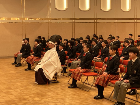 元服式を挙行しました。福井中学校では郷土の偉人、橋本左内先生が15歳で啓発録を著したことにならい、2年次に元服式を行っています。2年生はそれぞれが今後の目標をたて、元服式を機に今後の学校生活への決意を新たにしていました。