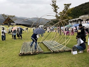 2022年10月9日(日)に福井県若狭町で開催された「若フェスin縄文ロマンパーク」に本学環境情報学部デザイン学科 藤田研究室が参加しました。同研究室は昨年の若フェスから参加し、毎回地元で採取した材料を使ったオブジェの作成・展示を行っています。